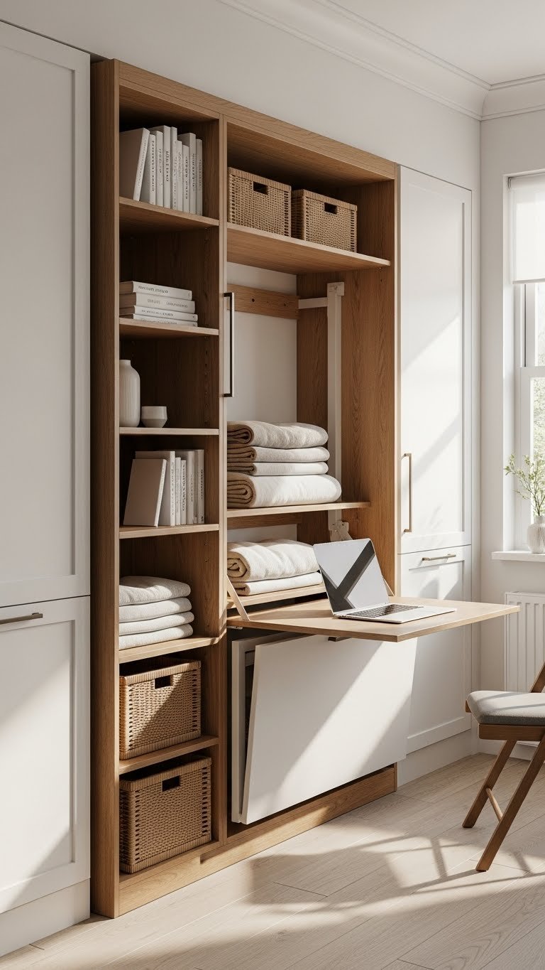 You’ll free floor space, simplify surfaces, and keep a minimal, airy vibe while staying flexible for guests or changing needs.