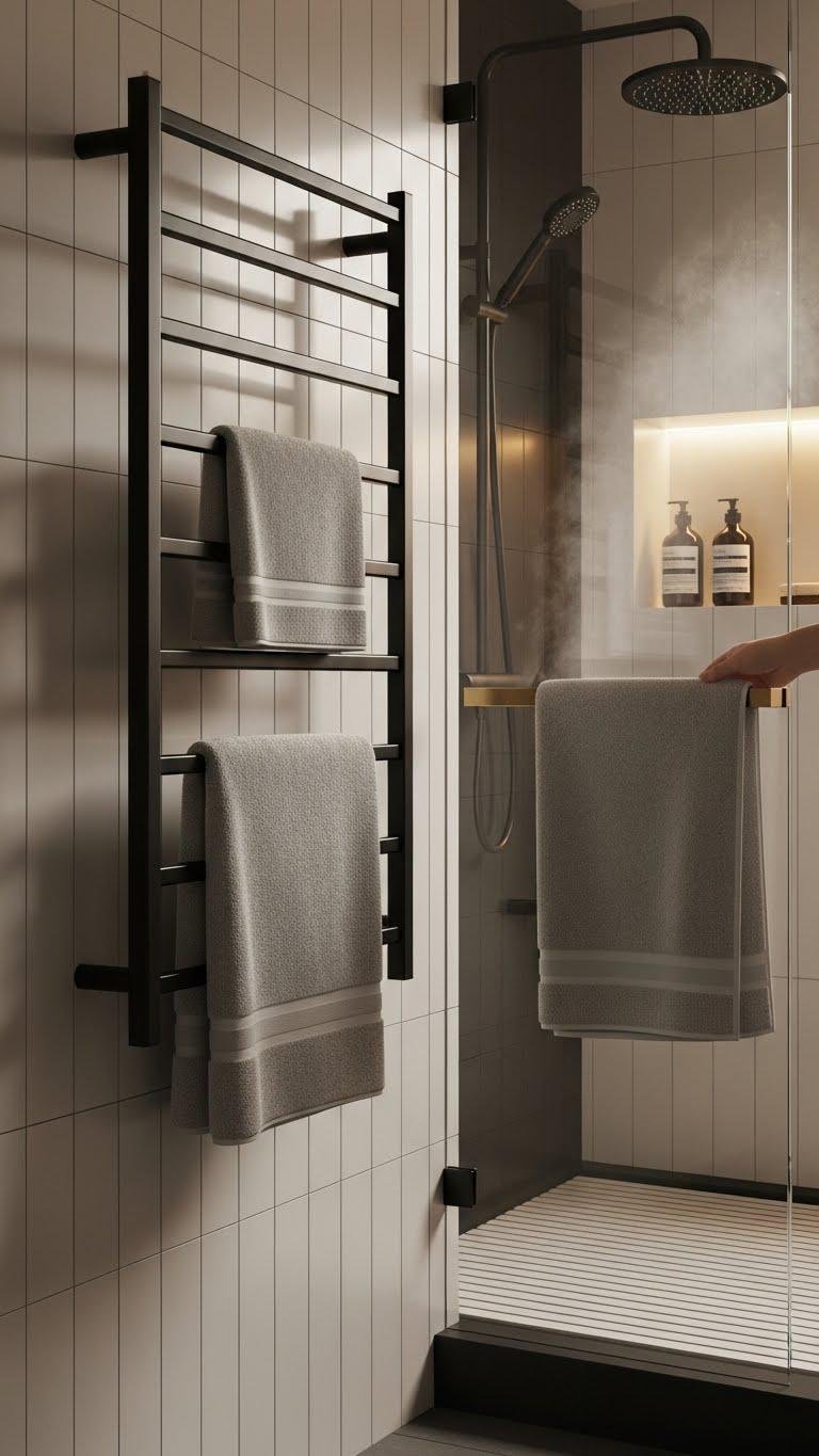 While adding warmth underfoot is a game-changer, pairing it with a heated towel rack brings the spa vibe to eye level and everyday routines.