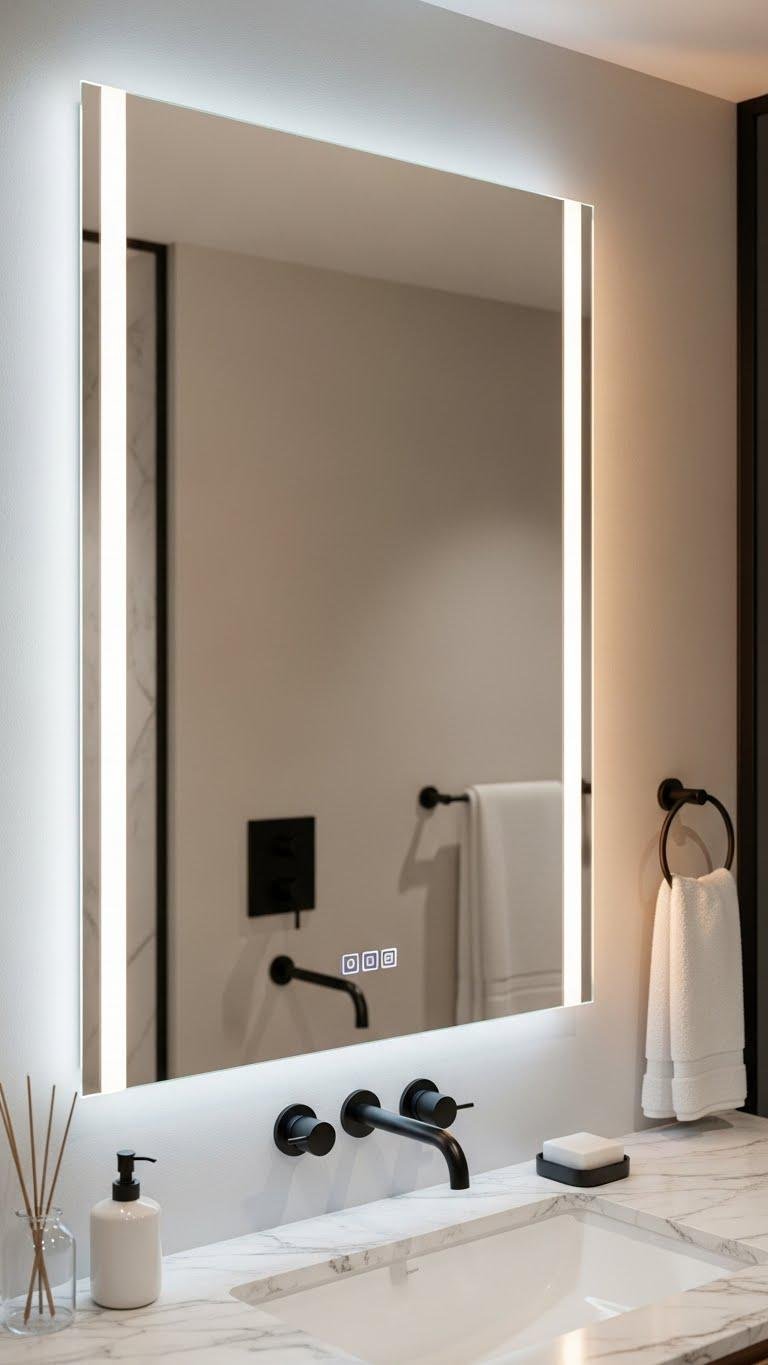 Mount a smart mirror with built-in lighting and defogging to make your morning routine faster and your bathroom feel spa-level polished. You’ll enjoy crisp LED touchscreens for controls, adjustable color temperature, and anti glare coatings that keep reflections clean. Install a slim bezel model to free wall space, streamline grooming, and create a calm, liberated vibe that reads modern and effortless.