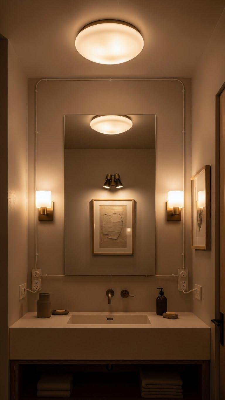 When you layer soft, indirect light with a few focal accents, the bathroom shifts from purely functional to quietly restorative.