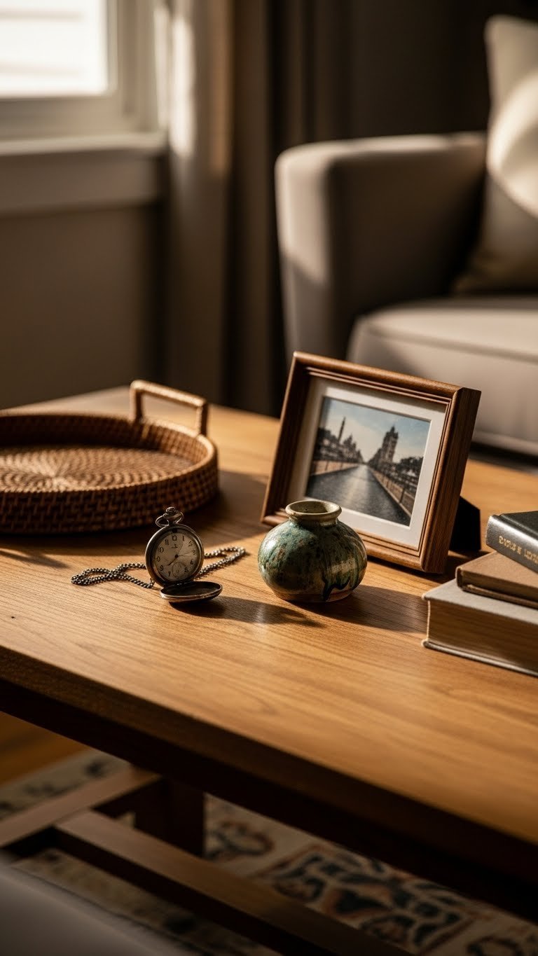 Anyone can make a coffee table feel uniquely theirs by choosing one or two personal treasures as the visual anchor—think a vintage pocket watch, a framed travel photo, or a small ceramic heirloom. You’ll create an heirloom spotlight that grounds the surface.
