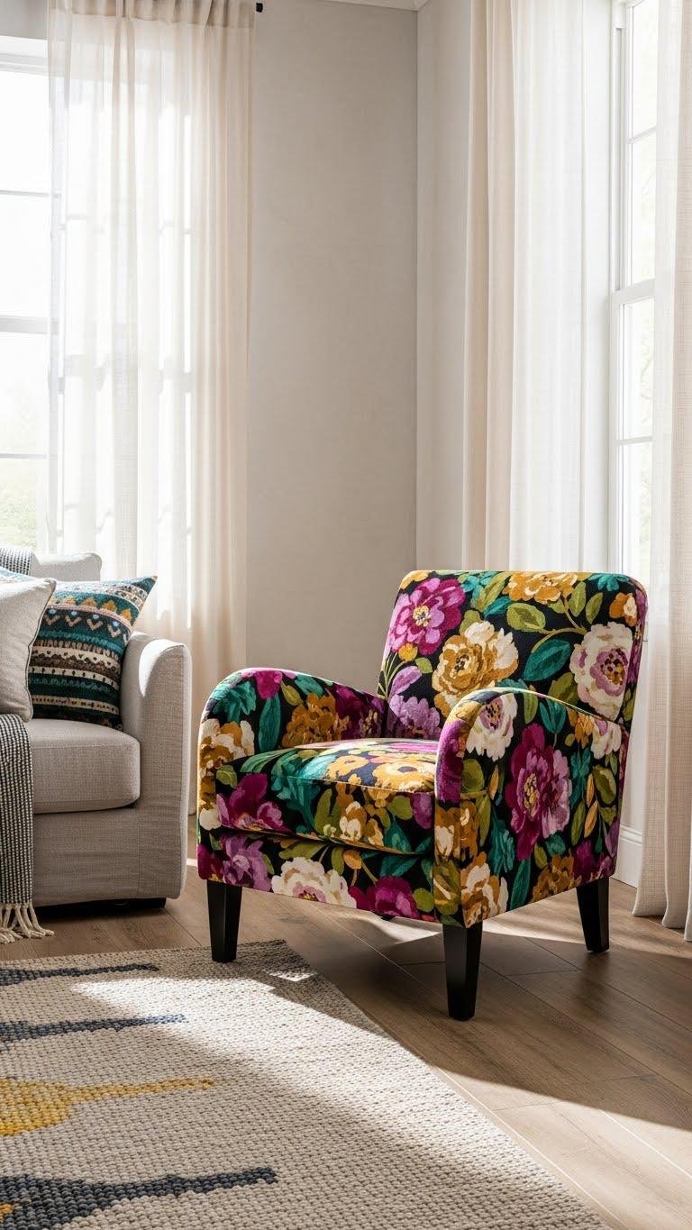 Maximalist printed accent chairs punch up a room with confident pattern and scale, so pick one that anchors the palette and tells a story.