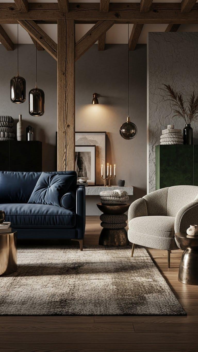 Embrace intentional contrasts—soft textiles against worn metal—to create liberated, polished rooms that feel lived-in and refined.