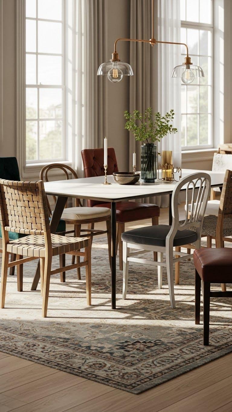 You’ll balance tactile variety and durability, creating a liberated, refined dining vibe that’s built to last and easy to live with.