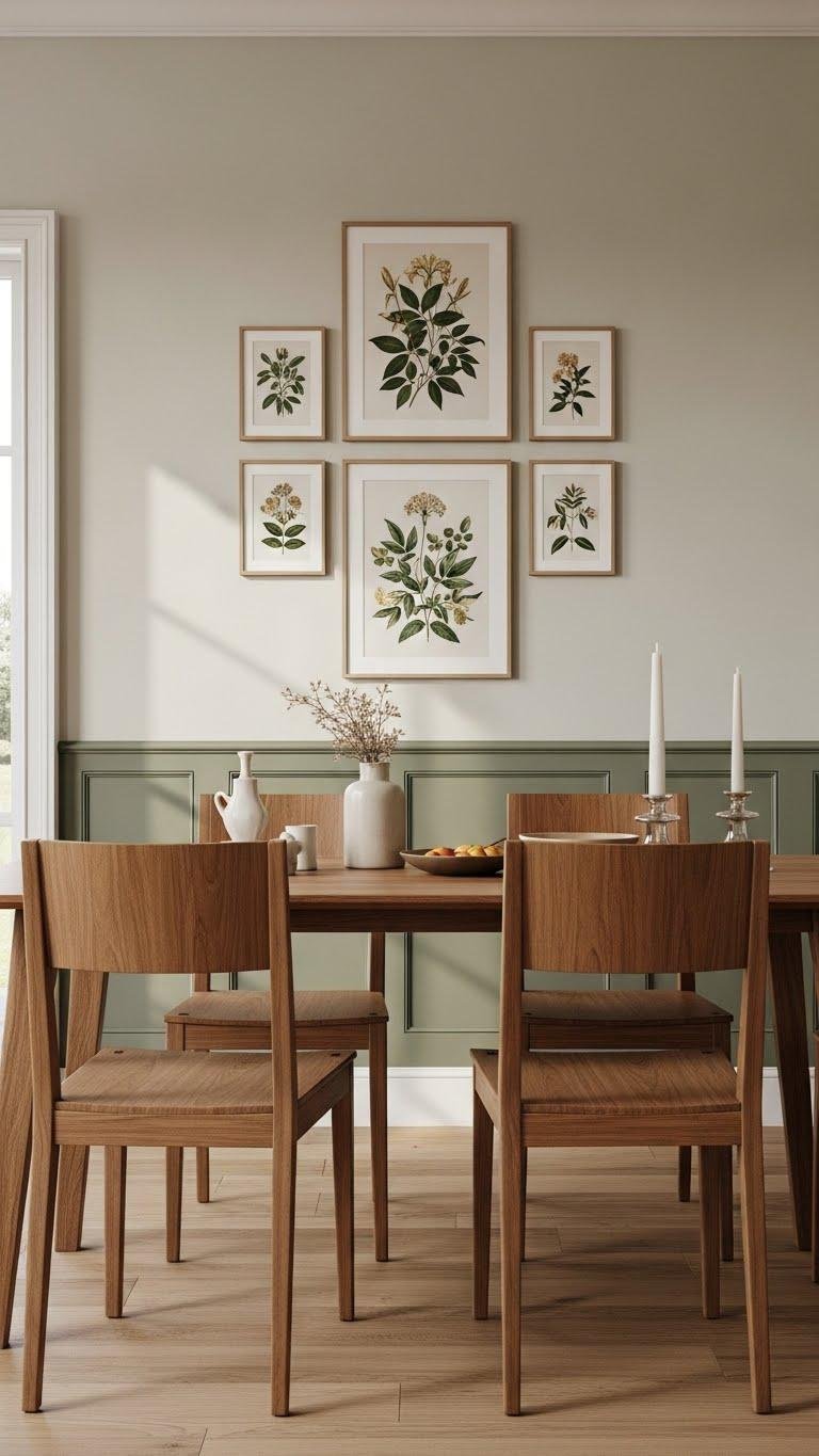 Once your solid wood chairs set the room’s tone, a gallery wall will pull the whole space together and give it personality.