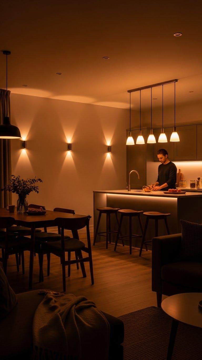 When you layer lighting with dimmers and smart controls, you get instant command over mood, function, and energy use—soften overhead lights for intimate dinners, boost task lighting for homework or prep, and schedule wake-up warmth for weekend brunches.