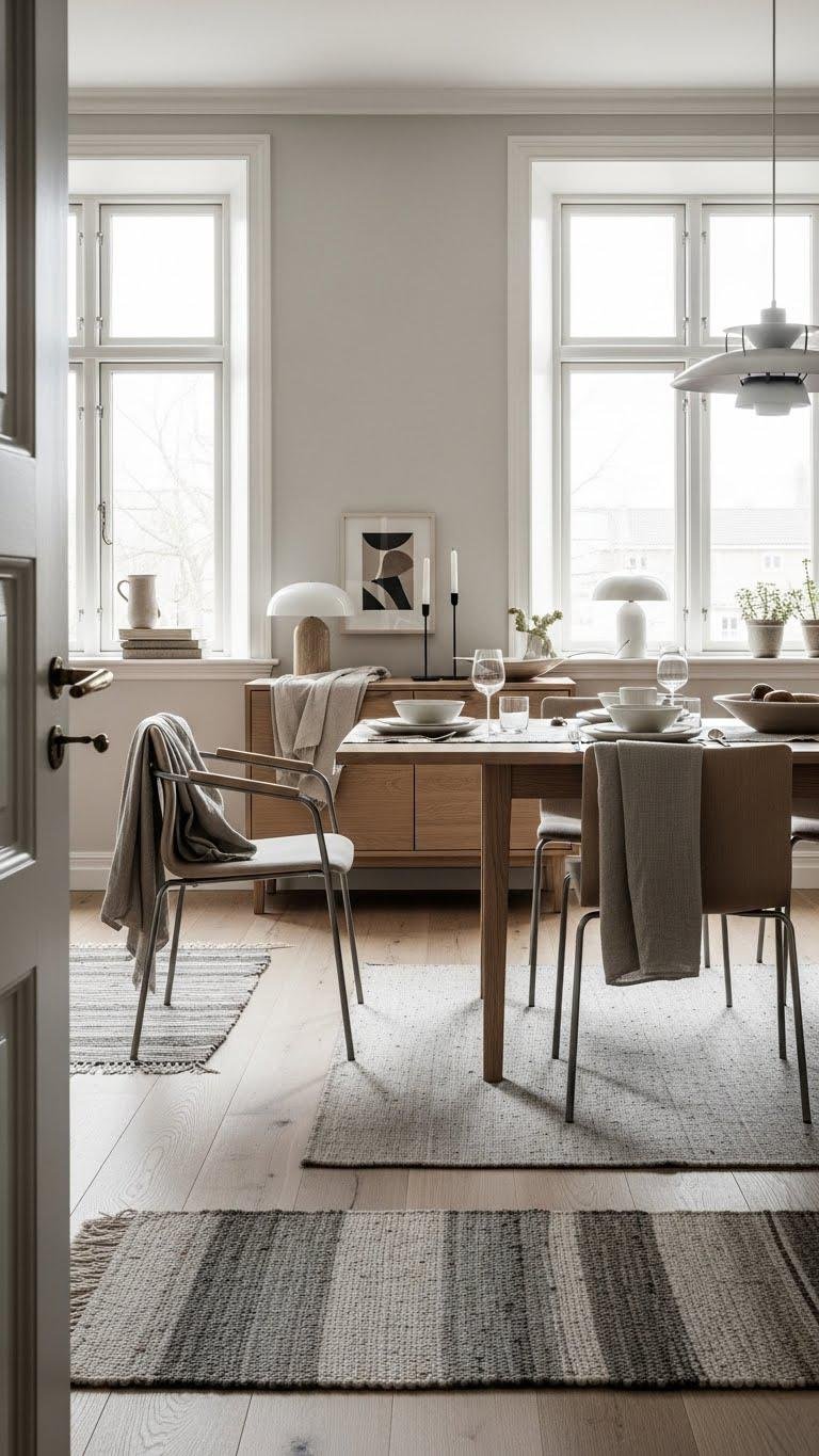 When you choose timeless Scandinavian lines and a neutral base, you give your dining room a calm, versatile foundation that highlights texture and form.