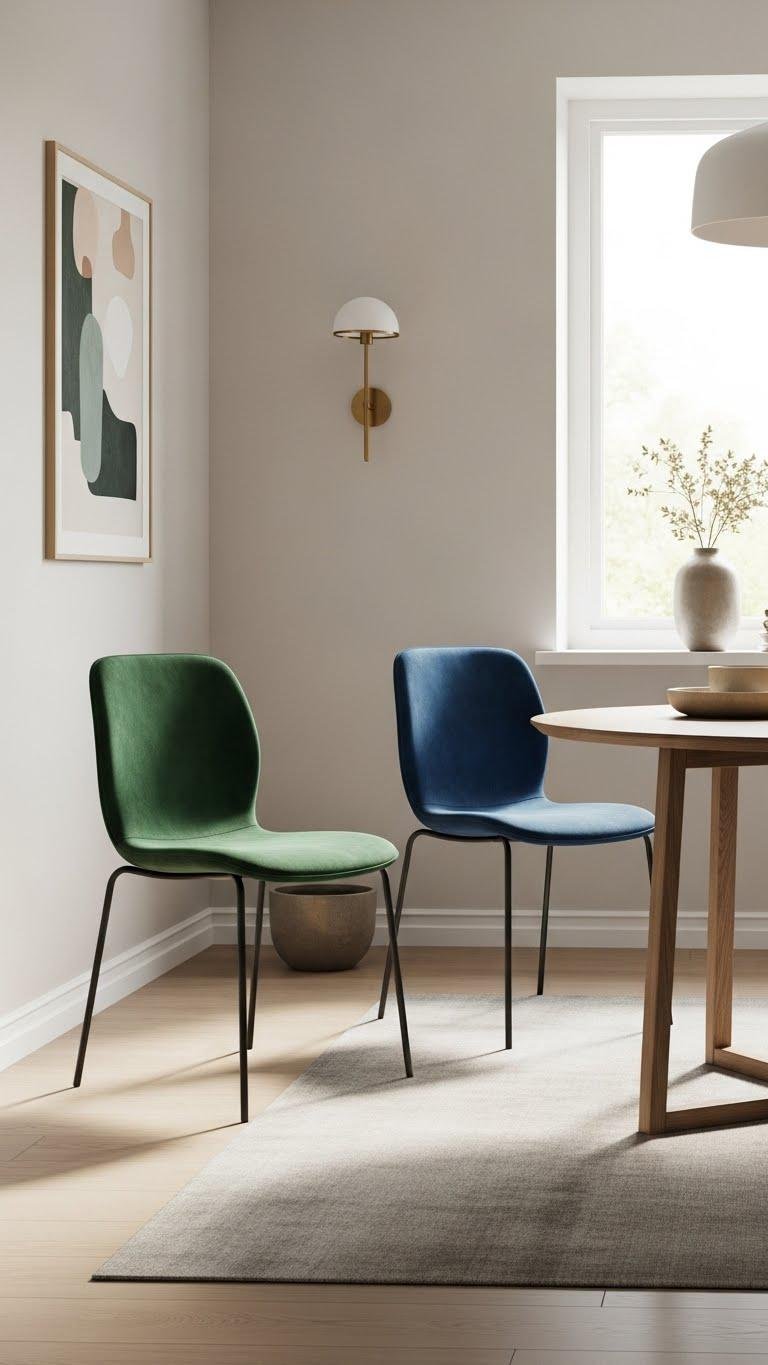 When you pair jewel-toned velvet chairs with minimalist lines, the room gains instant sophistication without feeling fussy.