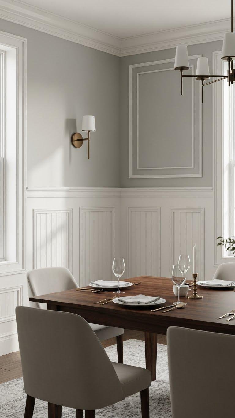 Although often associated with traditional homes, wainscoting or classic paneling can instantly elevate a dining room’s proportions and polish without overwhelming the space.