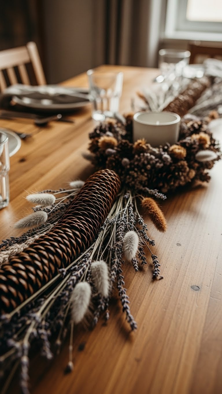 Pine Cones and Dried Flowers for a Rustic Table