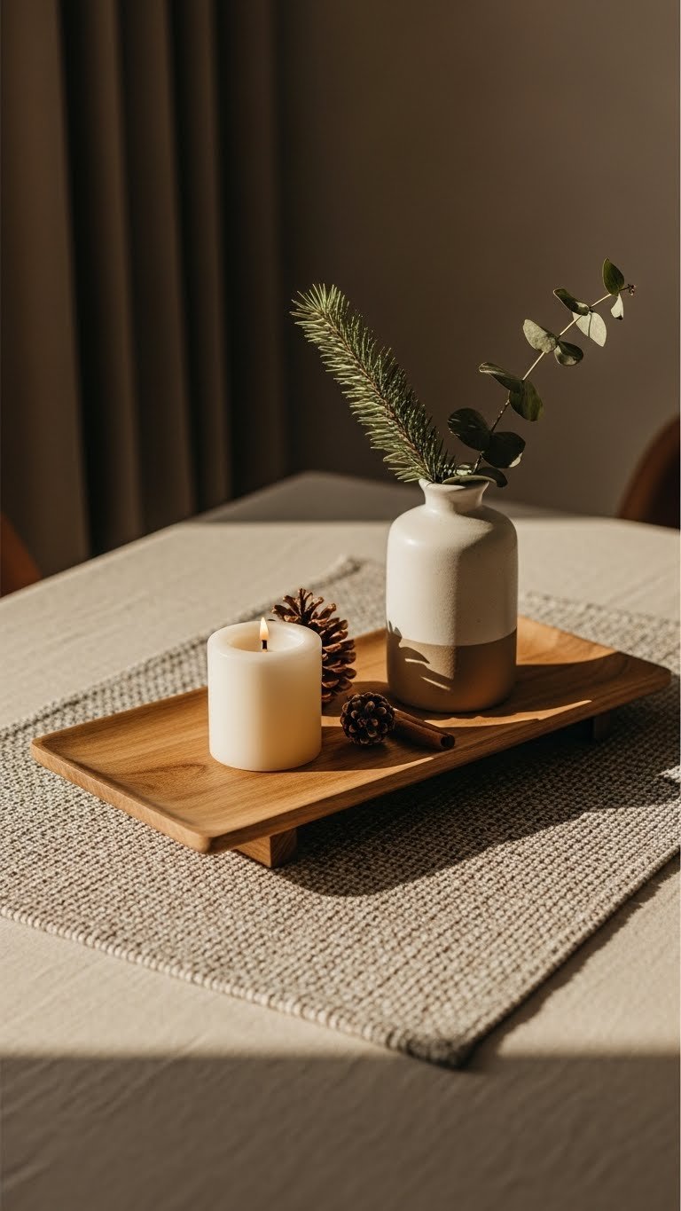 Choose a linen placemat for texture, then place a low layered tray with a candle, small vase, and seasonal accent. You’ll create a flexible, modern focal point that’s easy to swap and feels effortlessly free.