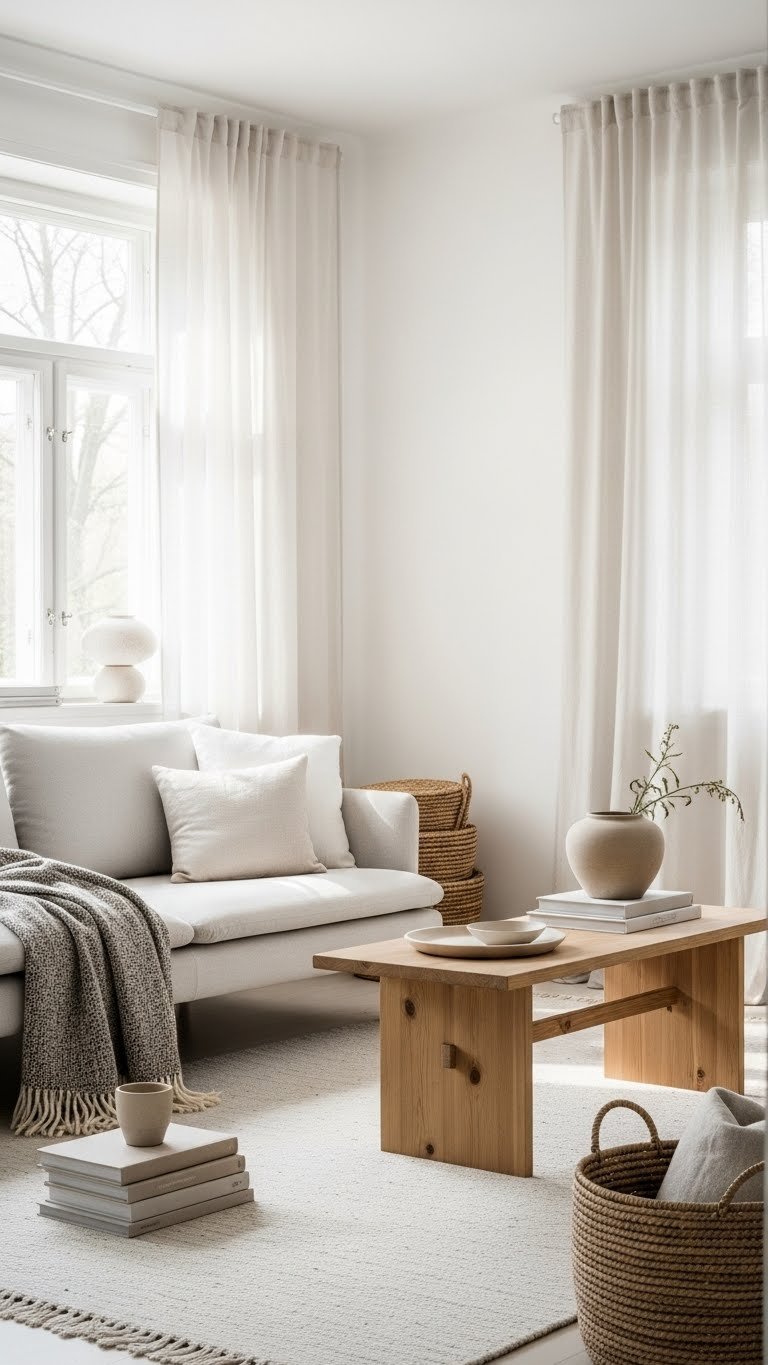 When you strip a living room down to white and warm neutrals, the space breathes—light bounces, edges sharpen, and every piece earns its place.