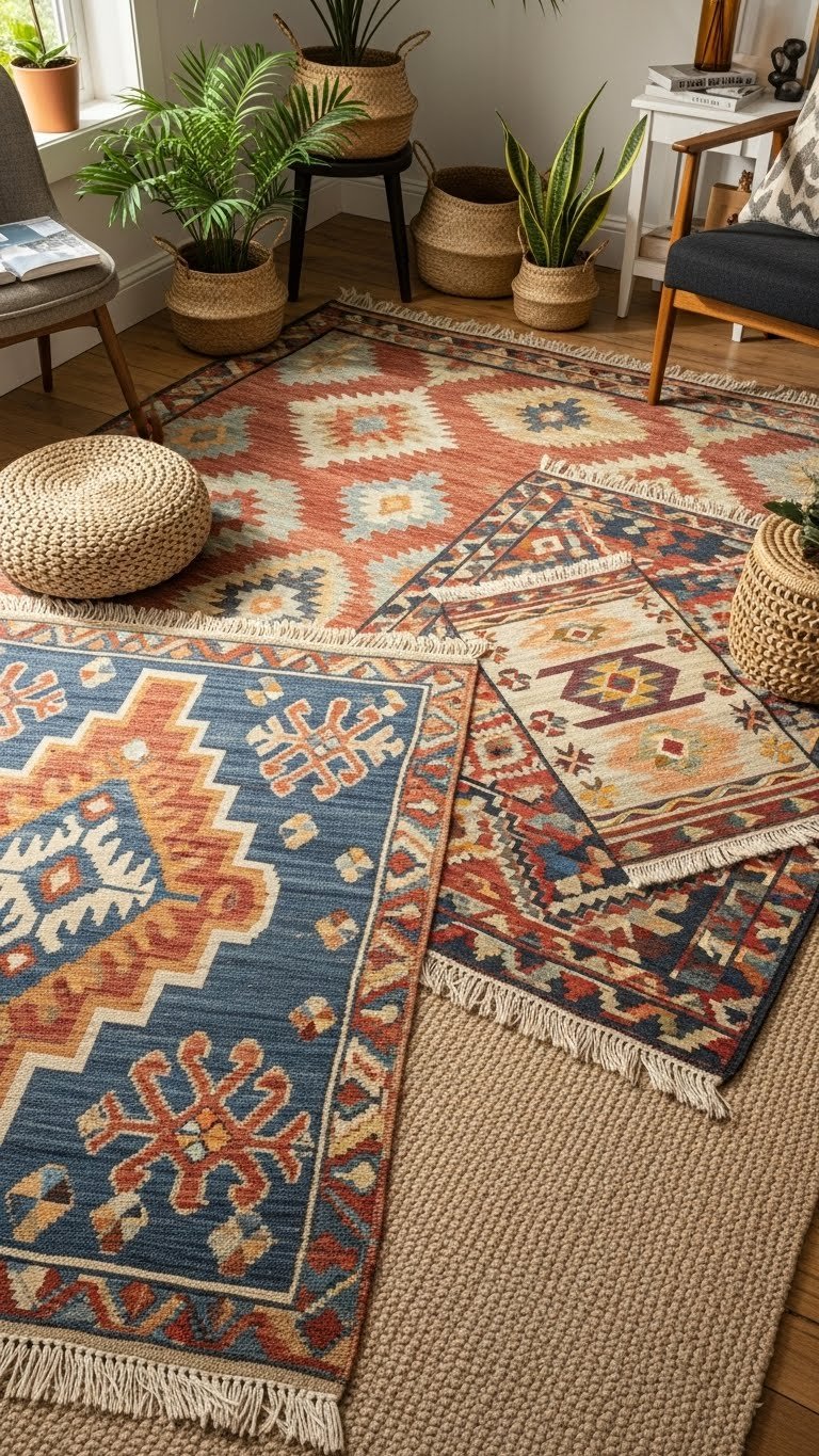 When you mix rugs with global patterns, you create a lived-in, collected look that anchors a room without feeling matchy.
