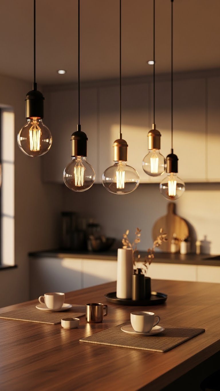 Pendant lighting with Edison bulbs turns kitchen islands into mood-makers, drawing attention with warm, filament-glow that feels both vintage and modern.