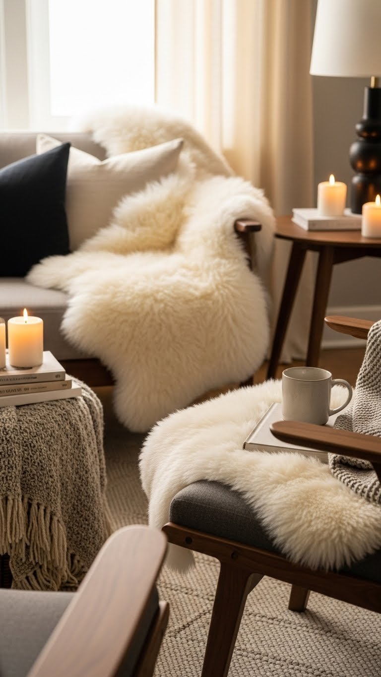 Often you’ll reach for a sheepskin throw when you want instant hygge—draped over a sofa or layered on a chair, it adds livable texture, softens sharp lines, and invites you to linger. You’ll love the soft pile underhand, the way it catches candlelight and creates a warm glow. Toss it casually, mix neutrals, and let comfort feel effortless and free.
