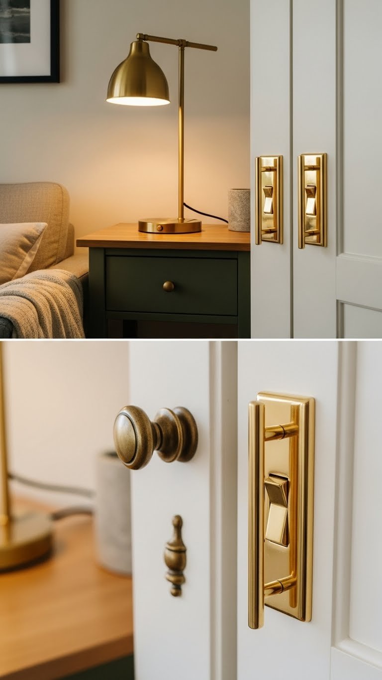 Introduce brass lamps and hardware to punctuate your space with warm gleam and sculptural presence. You’ll mix sleek table lamps, polished switchplates, and cabinet pulls to elevate minimal or boho rooms. Swap dated knobs for antique finials, layer soft illumination, and let metallic accents act like jewelry—subtle, confident touches that free your decor and celebrate effortless, modern refinement.