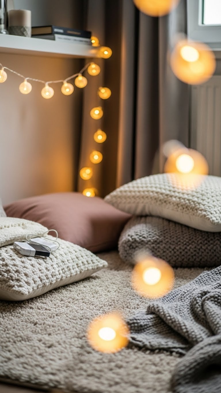Fairy Lights and Plush Rugs for Cozy Ambience