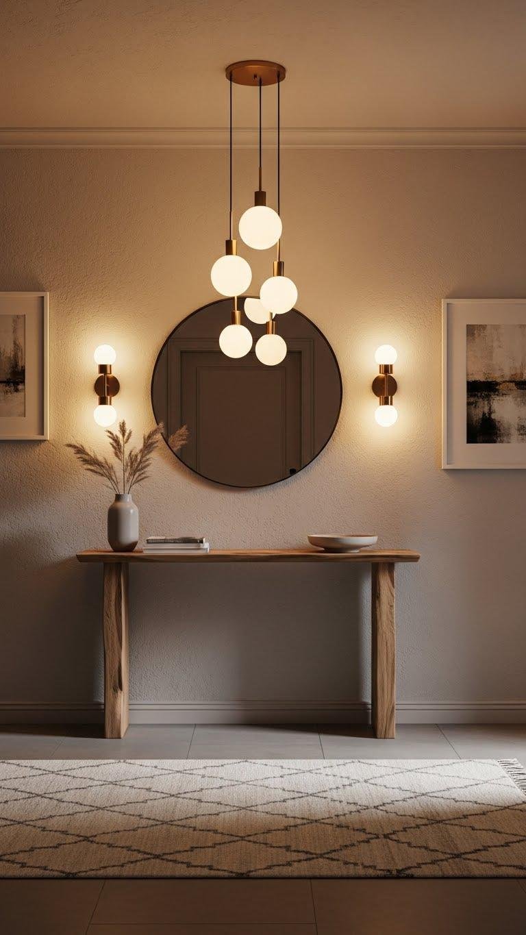 When you step into an entryway, layered lighting with pendants and sconces instantly defines the space and sets the mood; pendants give a focal glow while sconces add depth and balance.