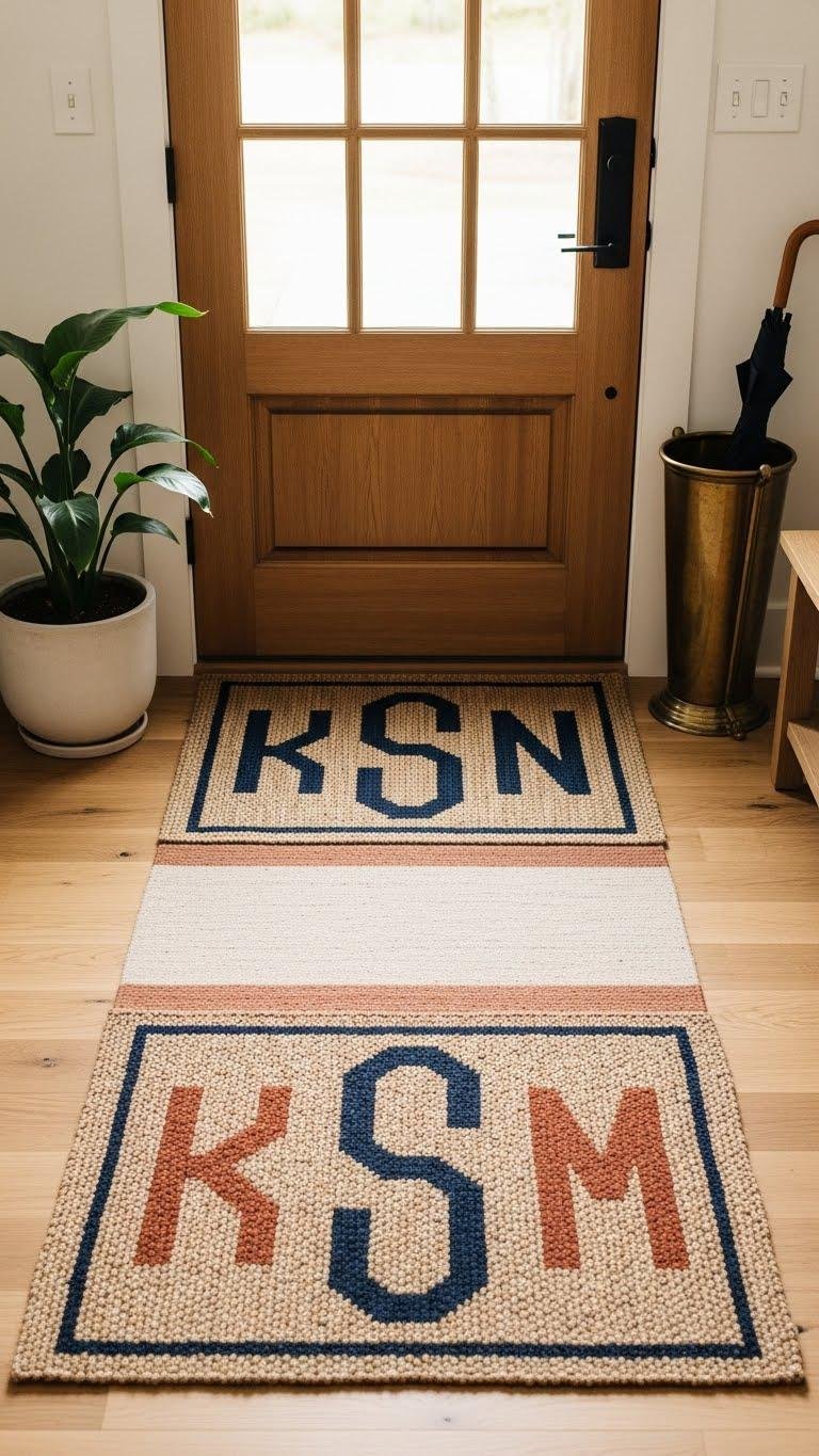 A single monogrammed rug can instantly stamp your entry with personality, giving guests a clear sense of who lives here while keeping the look polished and intentional.