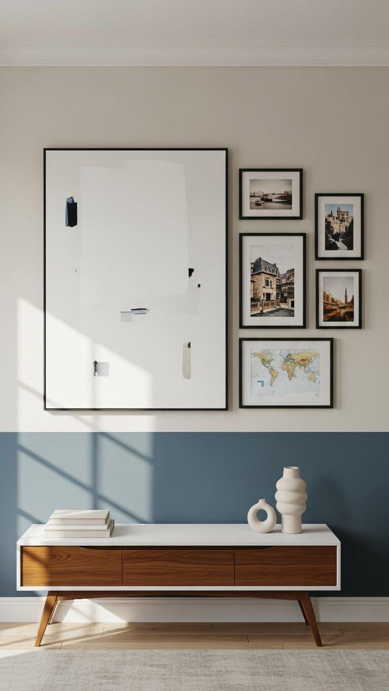 Choose an oversized canvas for bold, minimalist drama or mix frames in a cohesive palette to express wanderlust.