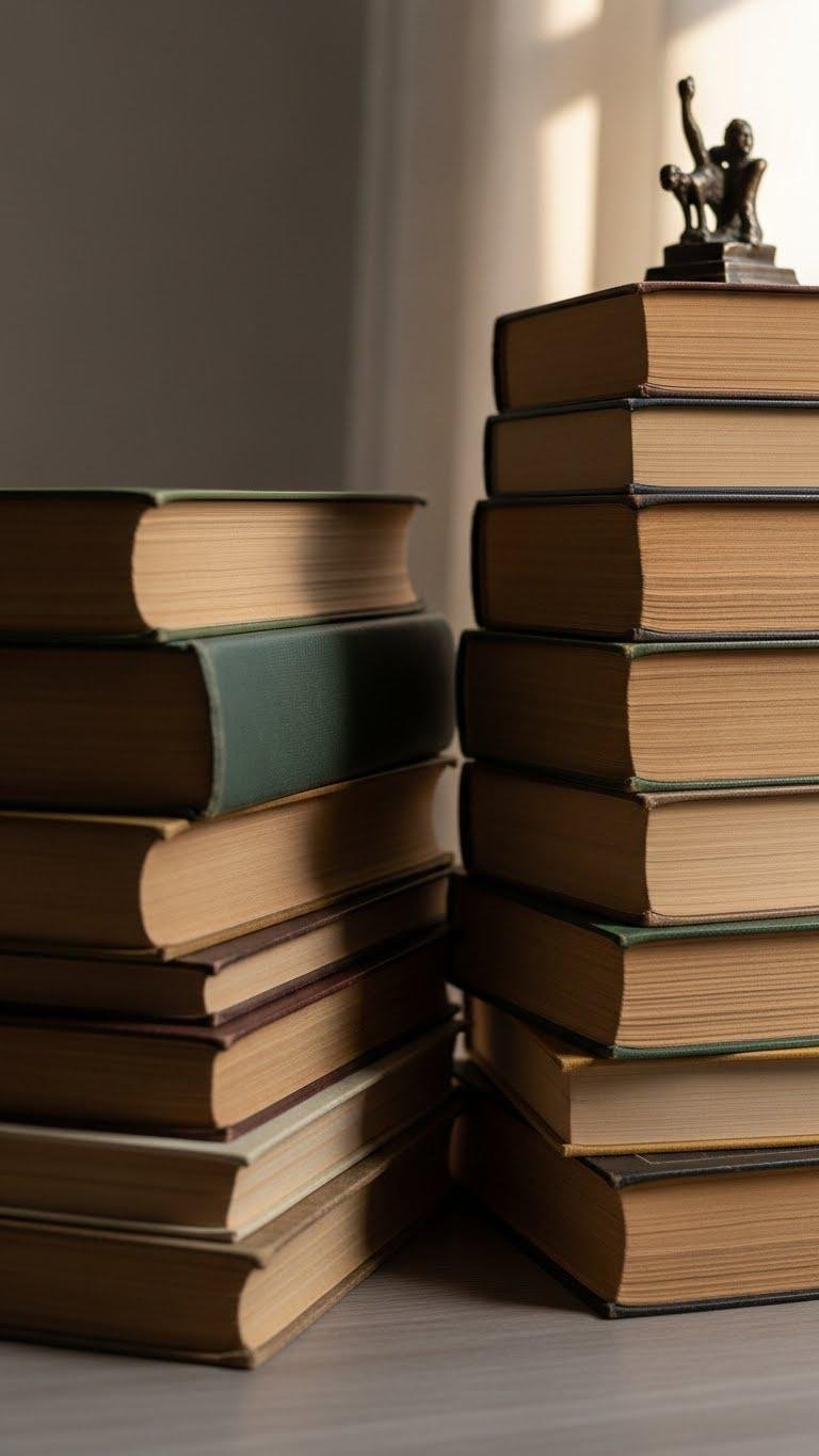 Vintage Books Stacked With Small Sculpture