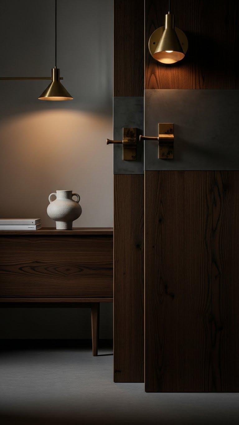 You’ll celebrate a moody grainscape that reads rich, tactile, and restrained. Pair sculptural brass or matte steel with oxidized hardware, add a single sculpted vase, and let negative space keep the look liberated.