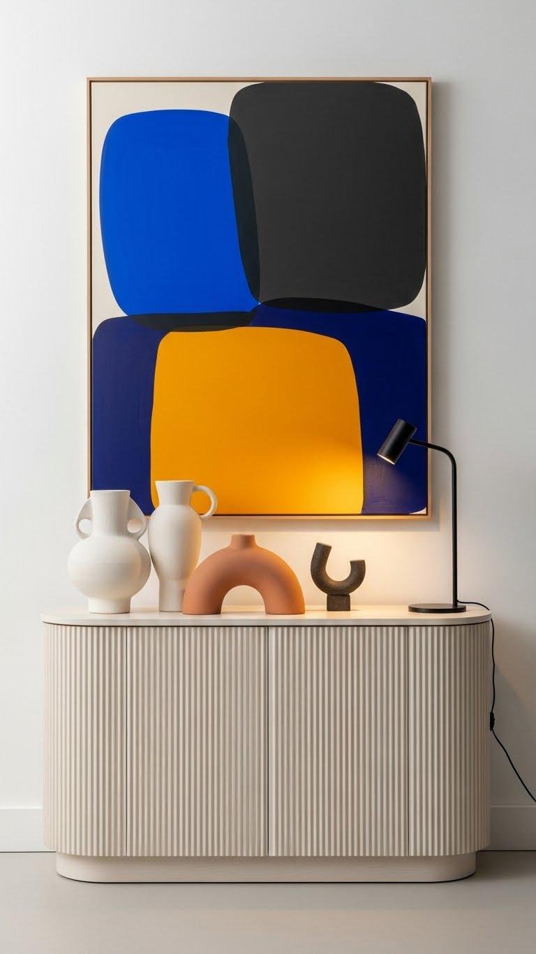 Fluted Front Table Styled With Abstract Art