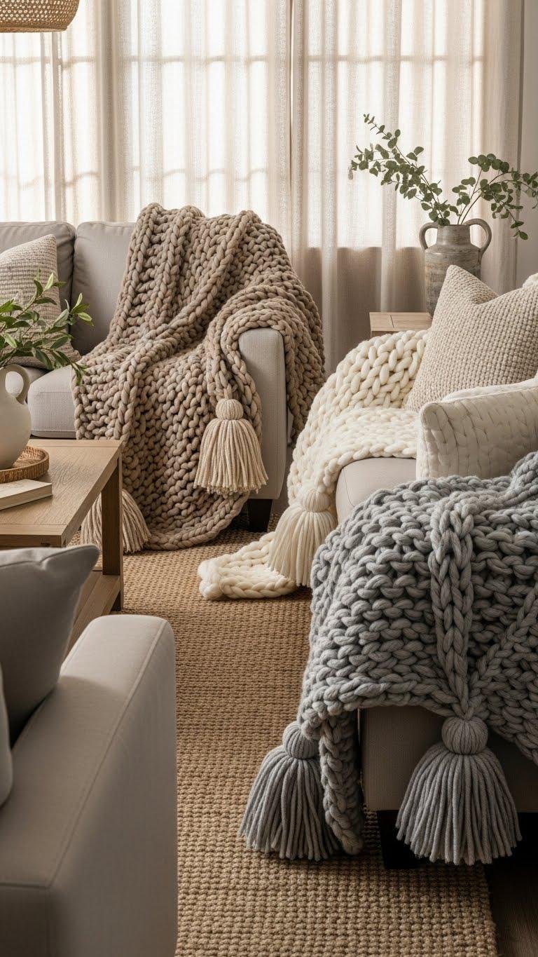 Drape neutrals over sofas or chairs, embrace oversized tassels as focal accents, and mix textures confidently to create relaxed, lived-in freedom in your space.