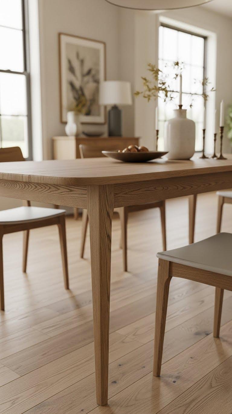 Lean into the balance of rugged materials and clean silhouettes when you choose a rustic dining table with refined lines; it grounds the room without feeling heavy. You’ll favor a subtle distressed finish, smooth edges, and tapered legs that lift the aesthetic. Pair it with simple chairs and open space to keep movement easy, modern, and unfettered — farmhouse charm, refined for living free.