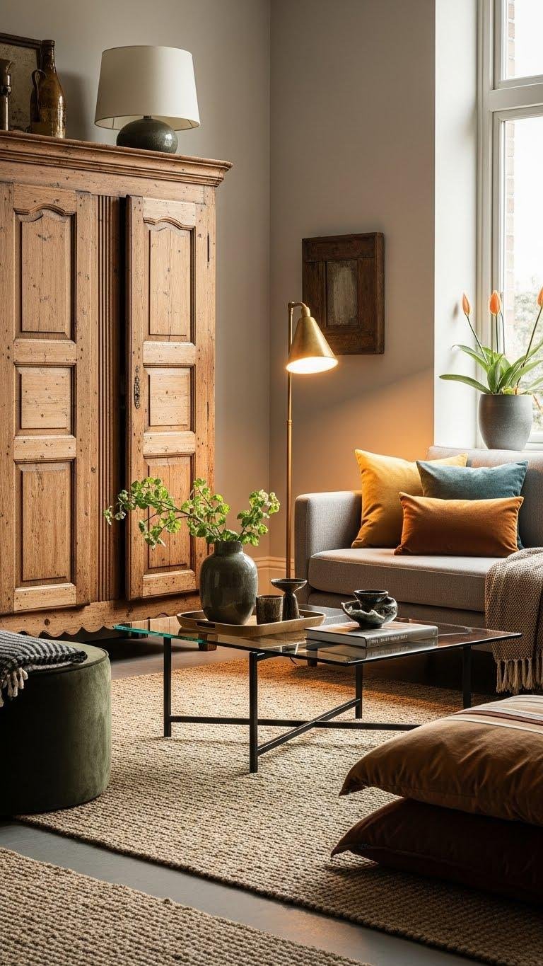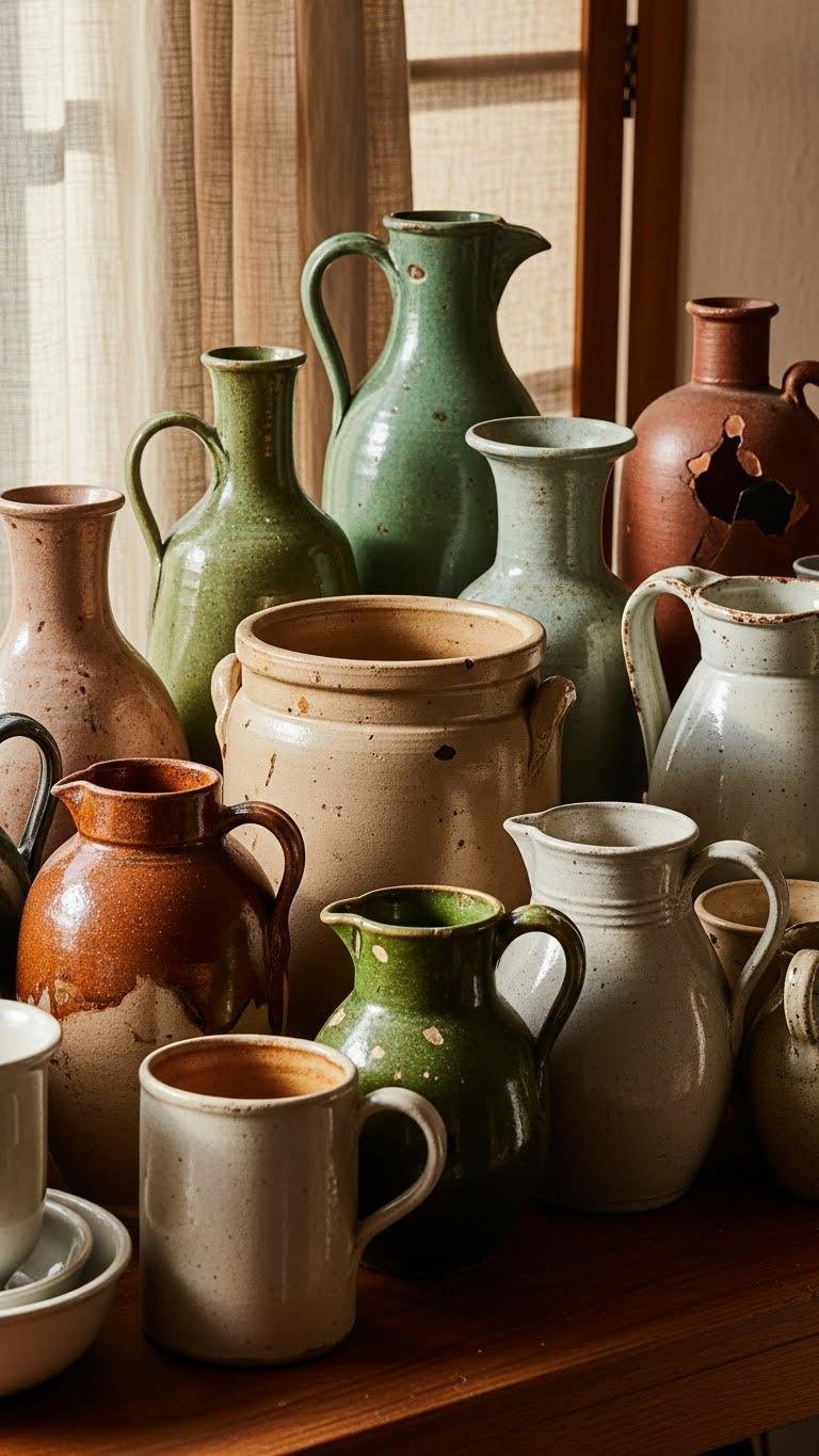 If you liked the easy charm of a linen curtain or folding screen, bring that same collected warmth to your surfaces with antique pottery and flea-market finds. You’ll hunt for glazed crocks, mismatched vases and rustic pitchers that tell stories.