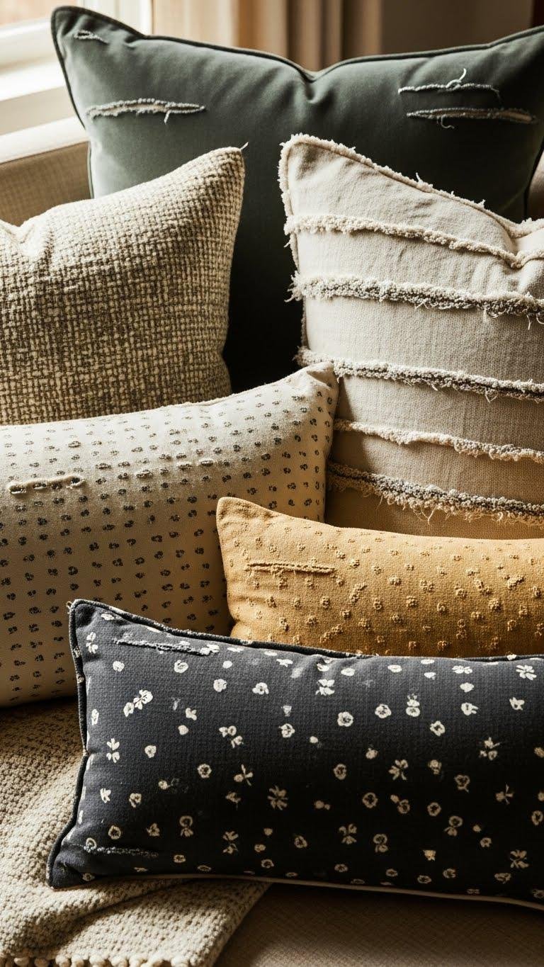 Often you’ll reach for worn-texture decorative pillows when you want instant lived-in warmth that still feels curated. You’ll mix distressed velvet and frayed linen to layer softness with edge, choosing muted earth tones and subtle patterns.