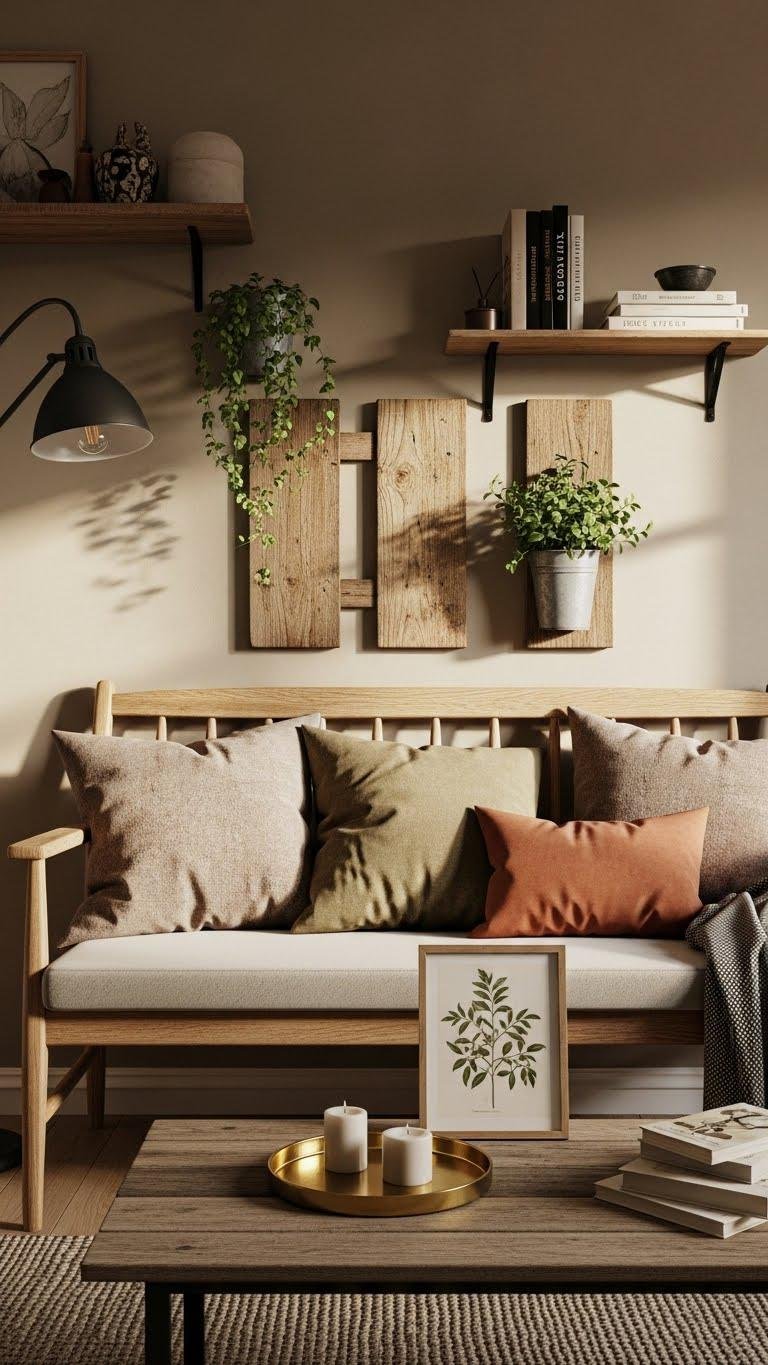 When you’re working with apartment square footage, think scaled-down rustic details that feel intentional rather than fussy: choose slim-profile wood furniture with soft distressing, layer a few worn-texture pillows in muted earth tones, and add small vintage finds—a brass candle tray or a framed botanical print—to give warmth without clutter. Accent with miniature barnboards, a scaled down galvanized planter, and floating shelves for airy storage.