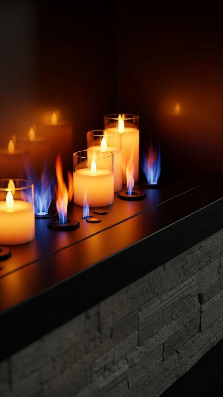 You’ll mix LED candles and discreet flame projectors to sculpt mood, layering warm tones, shadows, and motion. It’s a liberated, low-maintenance trick that reads designer without pretending to be traditional.