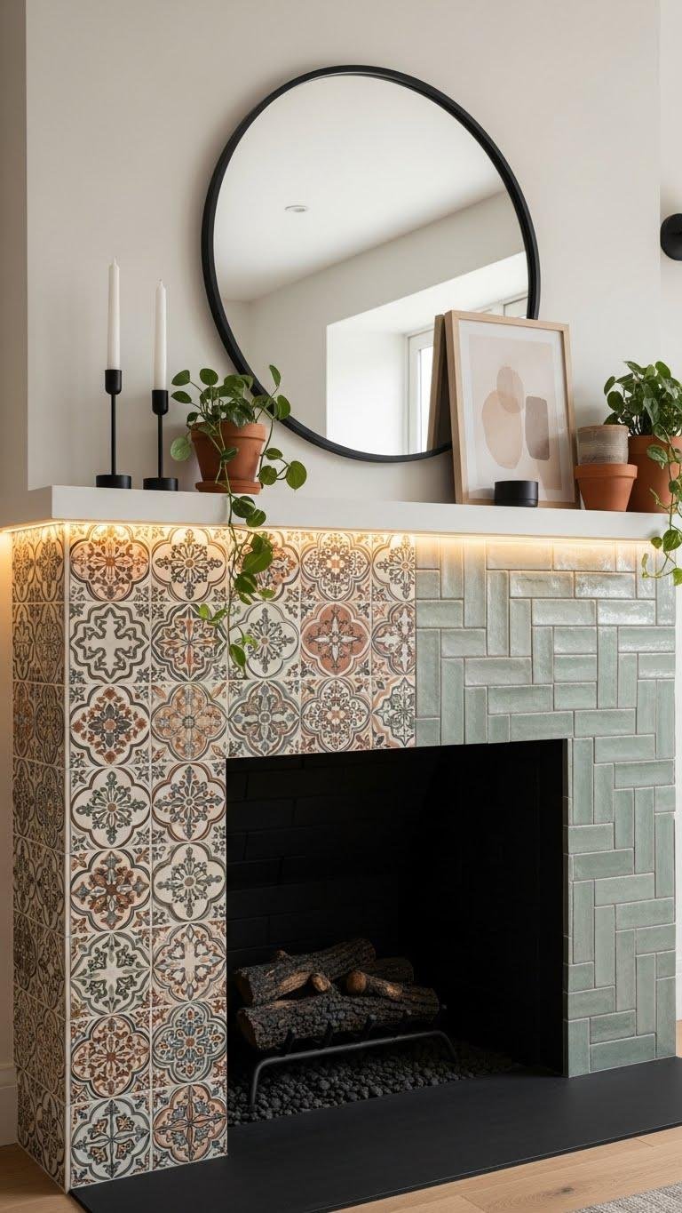 Framing your fireplace with textured tile instantly turns a simple hearth into a sculptural focal point that you can’t help but admire. Choose handmade encaustic patterns for artisanal depth or stagger matte subway tiles for modern restraint.