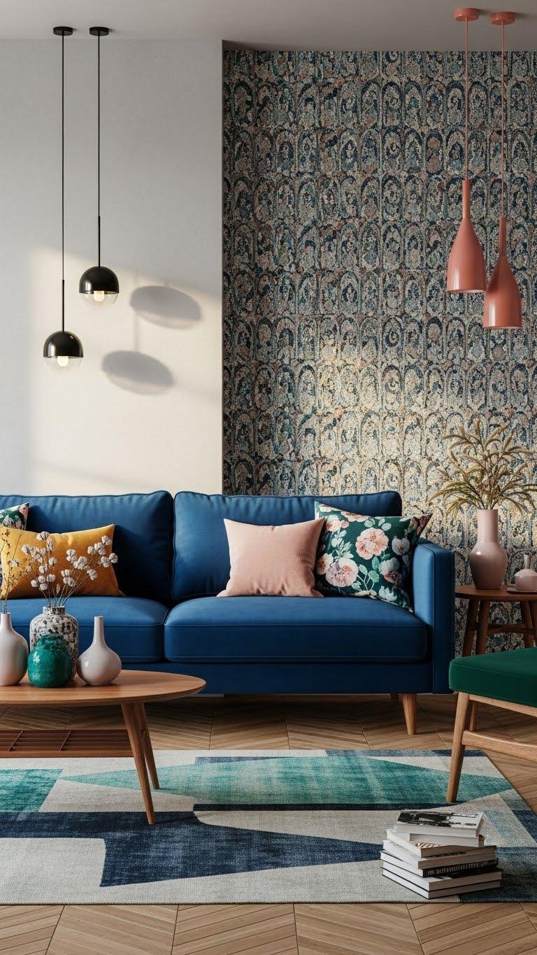 Mix textures—velvet, rattan, matte metal—to keep the look modern and effortlessly chic.