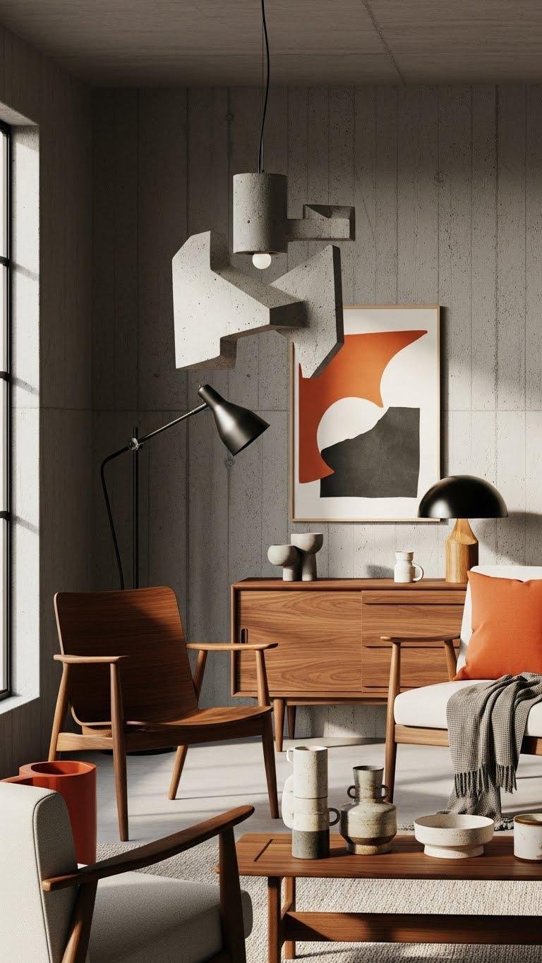 Include Brutalist or Mid‑Century Modern Accents