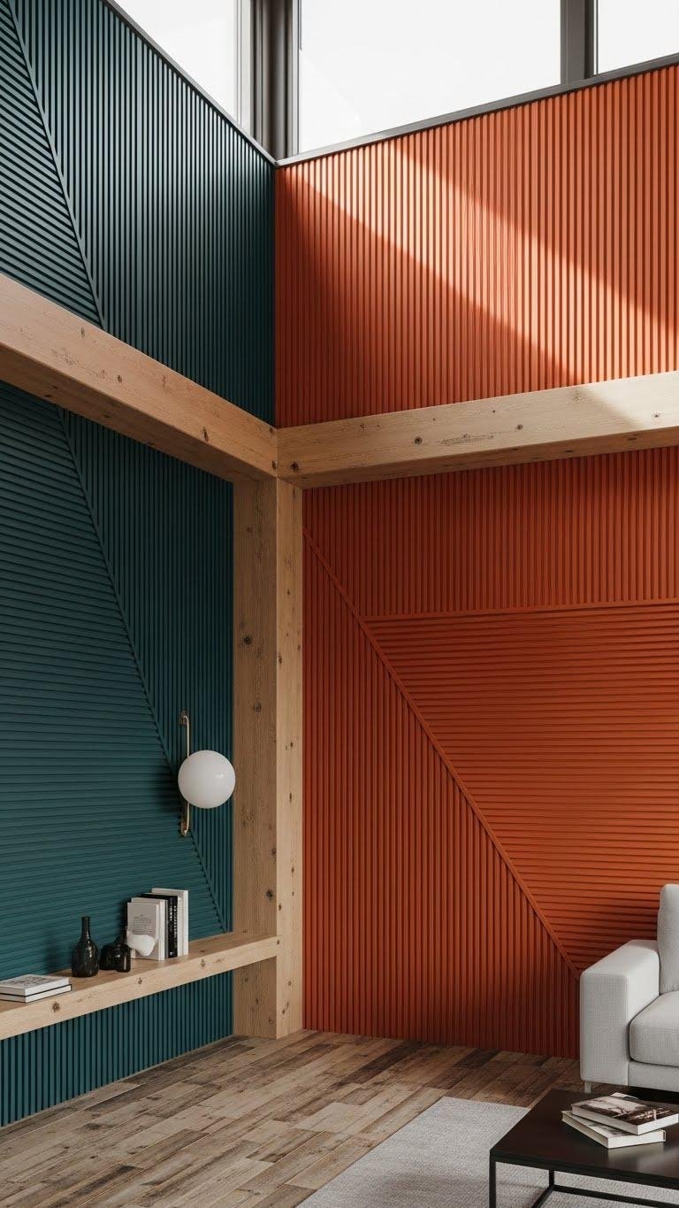 Choose bold grooved profiles painted in saturated panels to create movement and depth. You’ll make a fearless statement without clutter, guiding sightlines and reflecting light so your space feels liberated, modern, and intentionally designed.