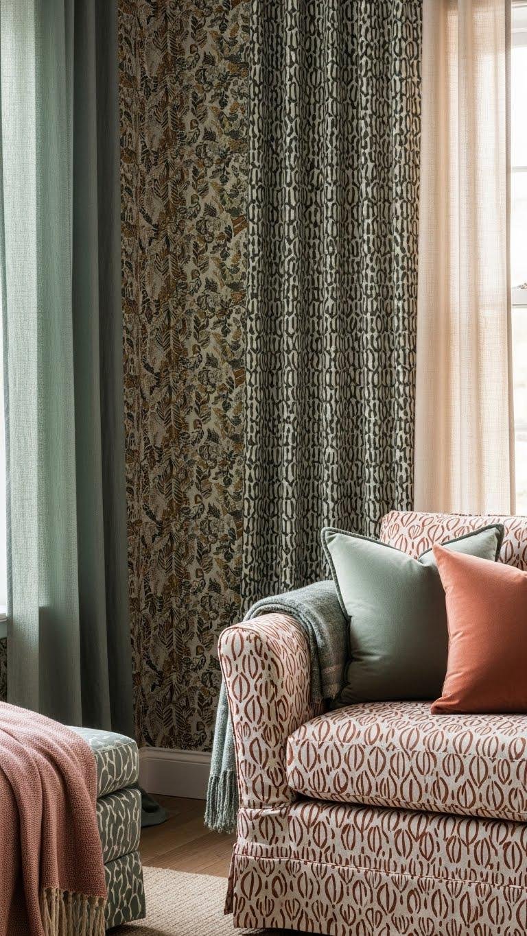 When you pair wallpaper with curtains and upholstery, think of them as collaborators in one visual story rather than competing elements. Choose a dominant pattern scale on wallpaper, then introduce a textile echo in curtains or cushions at a smaller or bolder scale. Mix textures and restrained colors so each piece breathes. You’ll create a layered, freeing room that feels intentional and effortless.