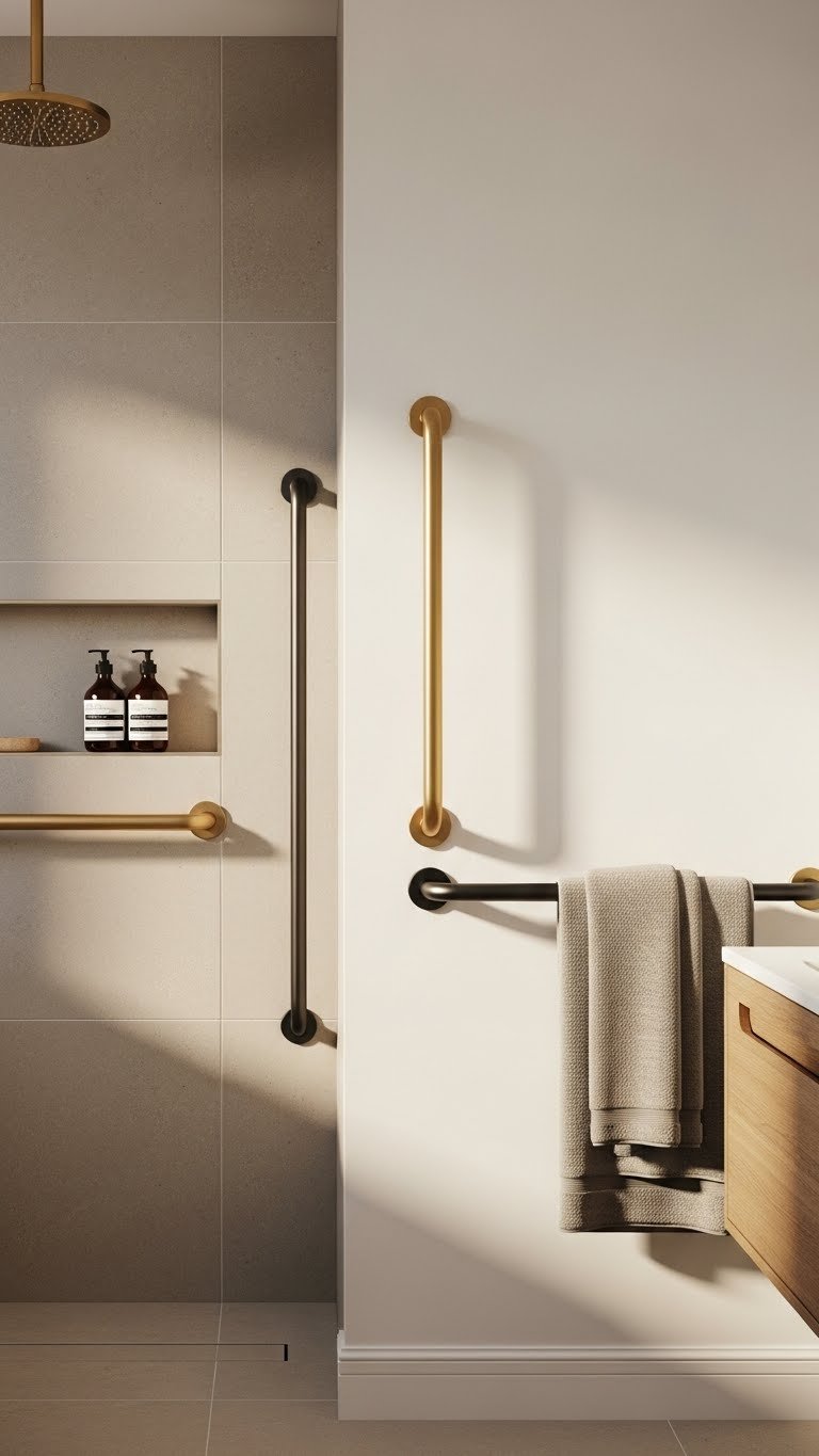 Confidence in the bath comes from design that looks intentional, not medical — and grab bars can be the detail that delivers both.