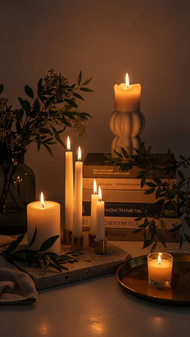 Layer a trio of candles at varying heights to immediately elevate any surface—mix pillar, taper, and votive forms so your eye moves across the arrangement. You’ll balance clustered tapers with a single sculptural candle, add texture with a tray or stone slab, and create miniature vignettes with books, botanicals, or metal accents. Keep proportions clean so each piece breathes.