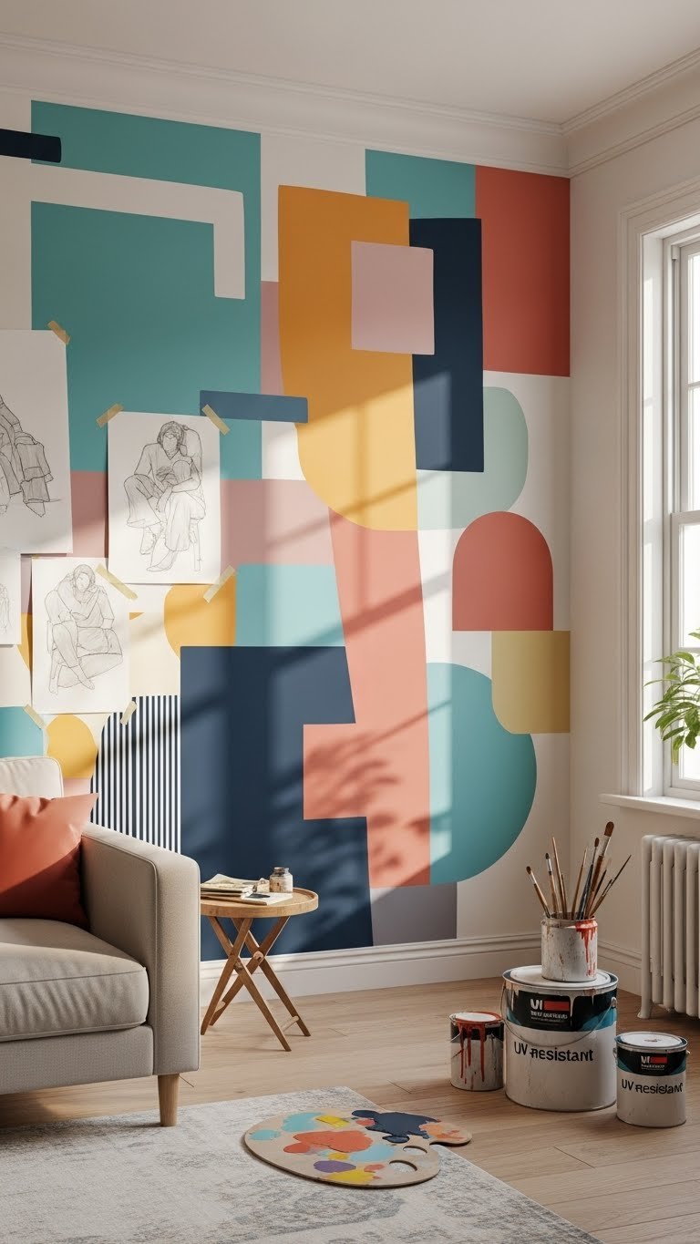 Make a bold mural the room’s anchor by choosing a palette and scale that complement your existing finishes and light. You’ll plan composition, sketch proportions, and select paints that resist fading. Use a bold accent to tie furnishings, introduce geometric motifs for structured movement, and balance negative space so the mural breathes. You’ll preserve freedom by tailoring color and form to your personal rhythm.