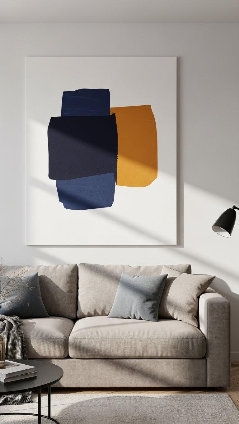 When you hang an oversized statement canvas above the sofa, it immediately anchors the room and sets the tone without clutter. Choose an oversized focalpoint that reflects your mood, then balance canvas proportions with sofa width and wall height. Mount it slightly below eye level, leave breathing space around edges, and keep surrounding accessories minimal so the piece feels liberating, bold, and effortlessly composed.