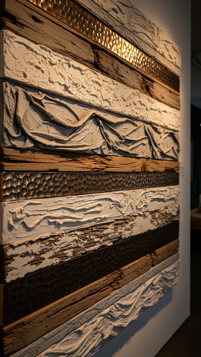 If you want to add depth and tactile interest, textured mixed‑media panels let you compose layers of material—plaster, reclaimed wood, metal, fabric, and paint—into striking, sculptural installations that read like wall art.
