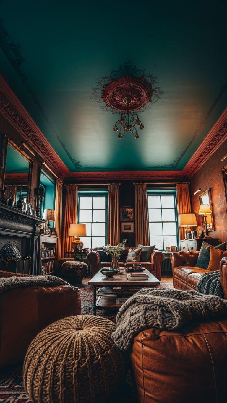 Embrace fearless color choices; your ceiling becomes the unapologetic crown of the room.