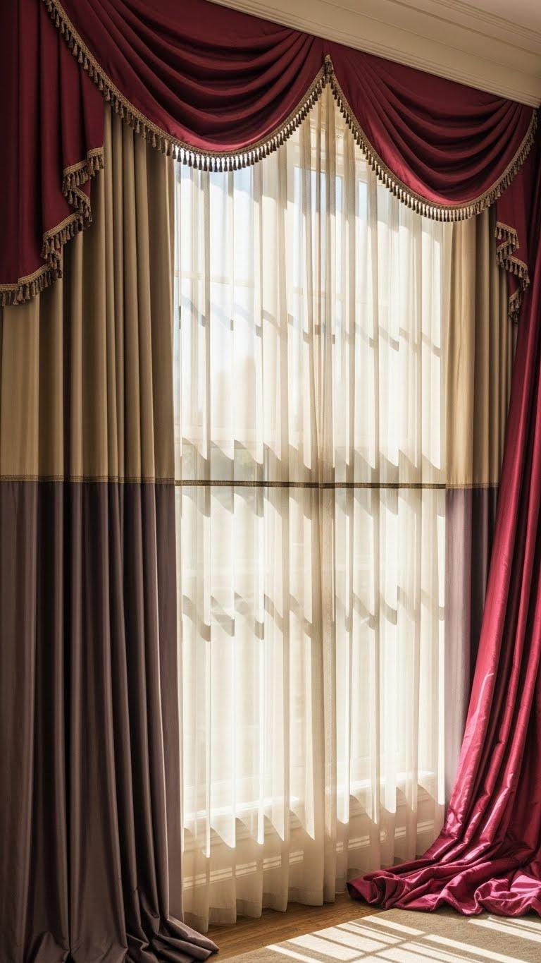 Mixing silk curtains with airy sheers gives your windows a luxe, lived-in look that’s both dramatic and functional. You’ll pair silk valances with full-length drapery, then rely on sheer layering to soften light and add depth. Choose bold colors or metallic trims, mount multi-tier rods, and let each layer move freely—this creates a liberated, intentional statement without feeling cluttered.