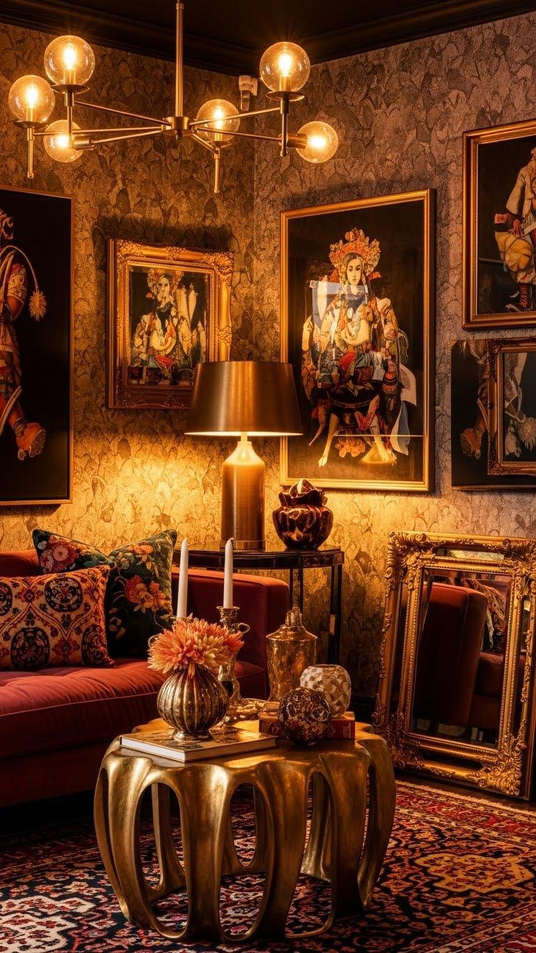 Introduce gold and brass accents to warm a maximalist room and give its exuberance a polished, intentional edge.