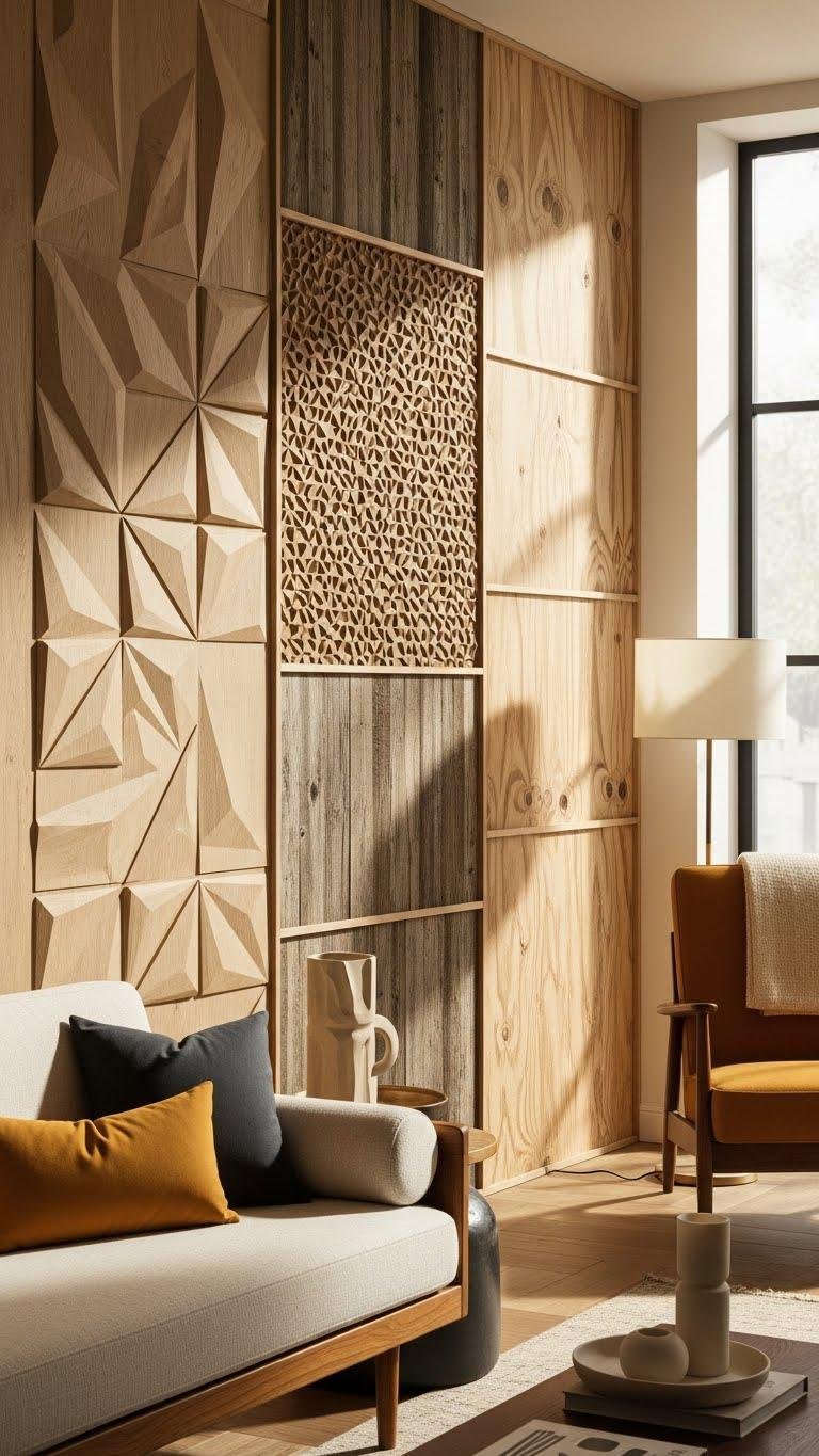 When you add textured wall paneling, you immediately give a room depth and personality without overpowering the rest of your scheme. Choose sculpted panels or reclaimed plywood for tactile drama; combine grain and geometric relief to create contrast.