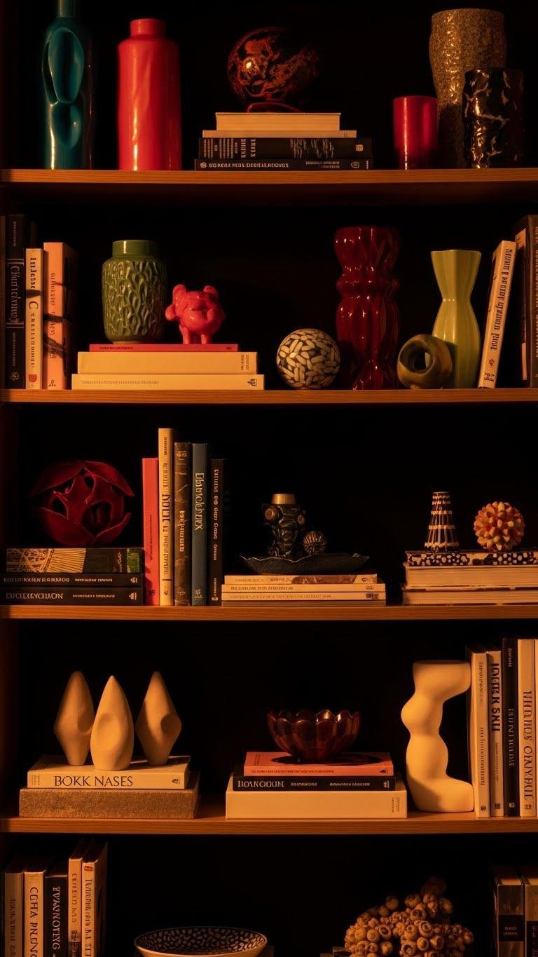 Now that your lighting has established drama and depth, let bookcases carry the visual story forward as artful still lifes.
