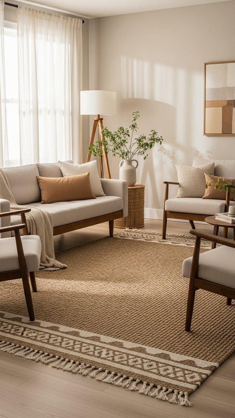 Often a soft rug is the simplest way to ground a space and tie furnishings together. Choose a neutral woven sisal for texture and durability, or a low‑pile hypoallergenic plush for comfort. You’ll define seating areas, soften footsteps, and keep lines clean without clutter.