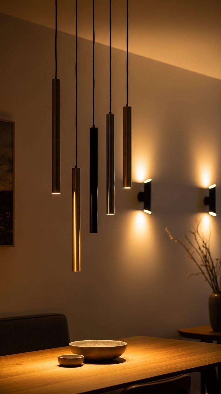 Warm metallics catch the eye; the fixtures you pick keep that glow feeling intentional after sunset. Choose dimmable fixtures to shape mood and control energy; sleek silhouettes age well. Mix statement pendants with subtle sconces, or hang pendant clusters above a table to create rhythm without clutter. You’ll want pieces that breathe — restrained, durable, effortlessly modern — letting light free the space.